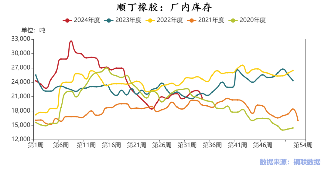 库存端:至8月25日,天胶社库120.5万吨,环比下降1.2万吨,降幅1.03%,同比降30.39%,同比处于较低水平。库存整体呈去库走势。
